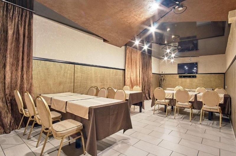 В большом и уютном зале ресторана вместимостью до 130 человек можно отпраздновать Ваш юбилей, корпоративный праздник, свадьбу. В ресторанном меню Вы найдете блюда на любой вкус, от домашней до европейской кухни. Винная карта лаундж-бара представлена множеством напитков. Стильная сервировка столов, хорошее музыкальное сопровождение, танц-пол в центре торжественного зала, будут приятным дополнением Вашего торжества.